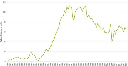 Ab Anfang der 1970er-Jahre erreichte der Mineraldüngeraufwand je Hektar bis in die Mitte der 1980er-Jahre seinen Höhepunkt, lediglich der sogenannten „Ölpreisschock“ sorgte für einen deutlichen Absatzrückgang.