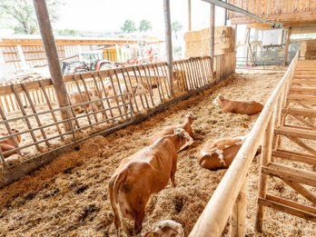 Tatsächlich schlafen sie nur 30 bis 90 Minuten, wesentlich kürzer als bei uns Menschen. Ob eine Kuh schläft erkennt man daran, dass die Kuh wirklich auf der Seite oder mit eingeschlagenem Kopf liegt. Besonders wichtig ist ihnen ein sauberes, bequemes „Bett“, also die Liegeboxen, die zweimal täglich frisch hergerichtet werden. Durch die festen Abläufe, sowohl was die Stallarbeit als auch was die Fütterung angeht, sorgen die Landwirt:innen dafür, dass die Tiere sich wohlfühlen und produktiv bleiben. Kühe lieben es langweilig und genau das, sollen sie auch bekommen!
