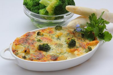 - Gemüse sollte immer mit etwas Fett konsumiert werden, also entweder zusammen mit Lebensmitteln, welche bereits Fett enthalten oder man gibt bei der Zubereitung etwas Öl hinzu. Dies erleichtert nämlich dem Körper die Aufnahme fettlöslicher Substanzen wie z.B. Carotinoide, Vitamin E und K usw.