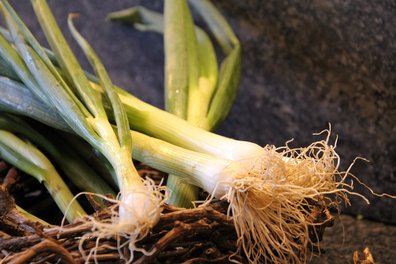 Gute Jungzwiebeln erkennt man an ihrem frischen, glänzenden Grün und der weißen Knolle. Im Gegensatz zu Küchenzwiebeln können sie sehr gut im Gemüsefach des Kühlschranks aufbewahrt werden.