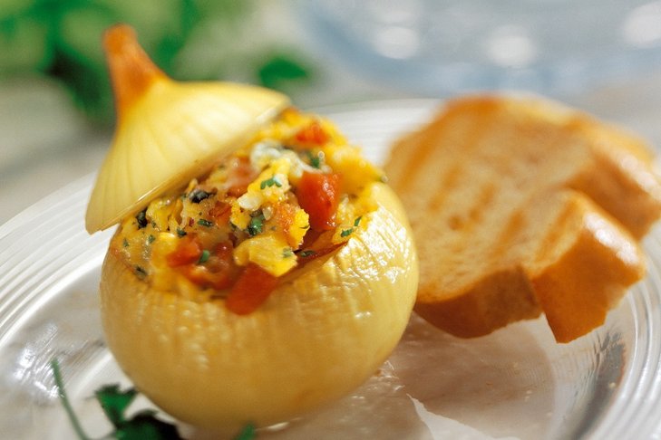 Zwiebeln enthalten bis zu 90 % Wasser sowie Eiweiß, Mineralstoffe (Kalium, Calcium, Phosphor, Eisen, Jod und Selen) und zahlreiche Vitamine. Besonders hervorzuheben ist der Gehalt an schwefelhaltigen Ölen, die die Verdauungsorgane anregen, wodurch der Stoffwechsel angeregt wird und in der Folge Cholesterin abgebaut und der Blutdruck gesenkt wird. Außerdem wirkt die Zwiebel vorbeugend gegen Krebs und Herz-Kreislauf-Erkrankungen.