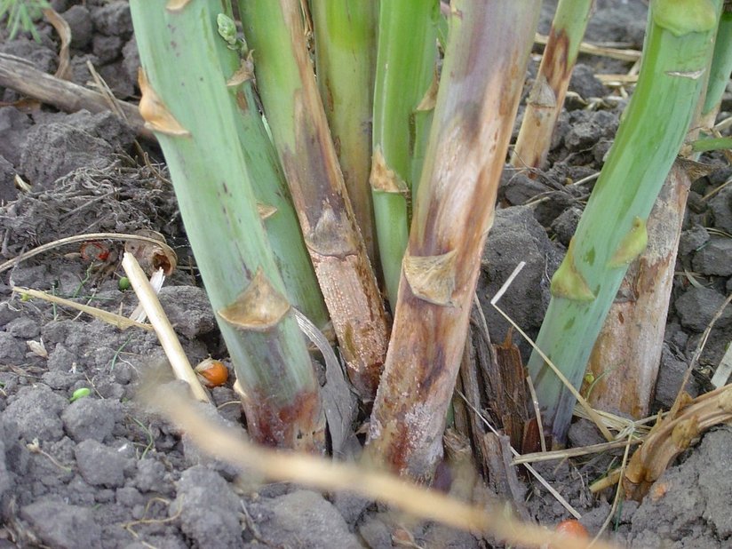 Eine Krankheit, welche von Bakterien verursacht wird und einen großen Wirtspflanzenkreis aufweist, ist die Bakterienfäule. Sie wird begünstigt bei Temperaturen um die 20 °C und erhöhter Feuchtigkeit im Boden und der Luft. Das Auftreten der Krankheit wird sichtbar an den hellen wässrigen Flecken, z.B. am Zwiebelhals oder an den Blattrippen von Chinakohl. Werden infizierte aber noch gesund aussehende Pflanzen eingelagert, setzt sich der Fäulnisprozess im Lager fort.