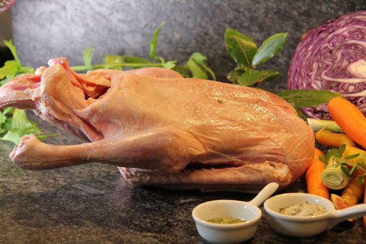 Von der Gans werden hauptsächlich Brust und Keule als Teilstücke angeboten.