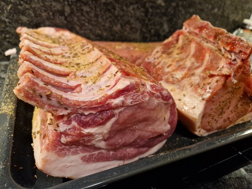 Genauso ist die Marmorierung ein Garant für saftiges Schweinefleisch. Denn ist das Fleisch von einem dünnen Fettgewebe durchzogen, macht dieses das Fleisch geschmackvoll, indem es beim Zubereiten schmilzt. Mageres Fleisch trocknet beim Braten leicht aus. Ebenso verhält es sich mit dem Fettrand. Die leichte Fettabdeckung schützt das Fleisch nicht nur vor dem Austrocknen. Fett ist außerdem Träger zahlreicher Aromastoffe. Aus diesem Grund sollte der Fettrand erst nach der Zubereitung weggeschnitten werden.