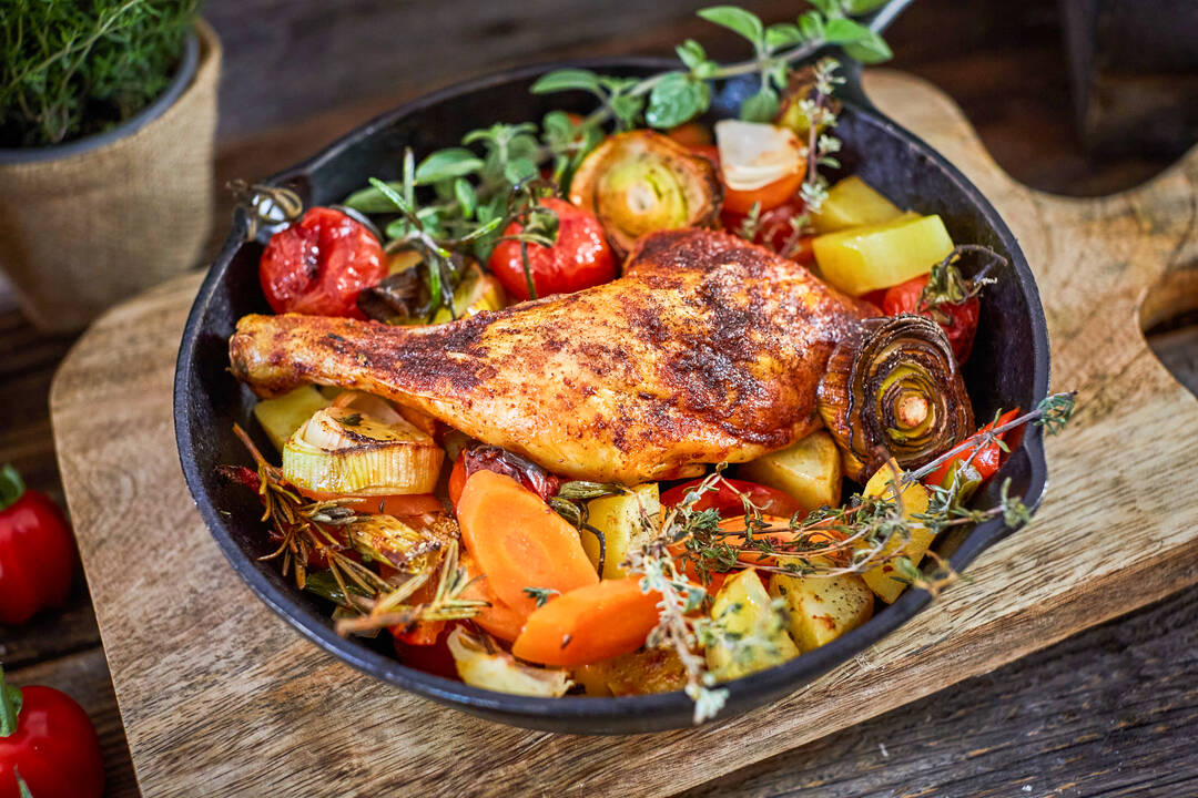 Bei der Würzung sollte man sich auf drei Gewürze – exkl. Salz und Pfeffer – beschränken. Gesalzen sollte das Fleisch erst kurz vor der Zubereitung werden, da es ihm Flüssigkeit entzieht. Als Kräuter harmonieren mit Hühnerfleisch ausgezeichnet Paprika, Rosmarin und Thymian.
