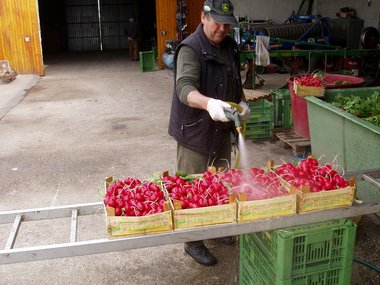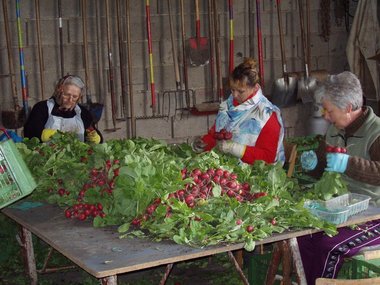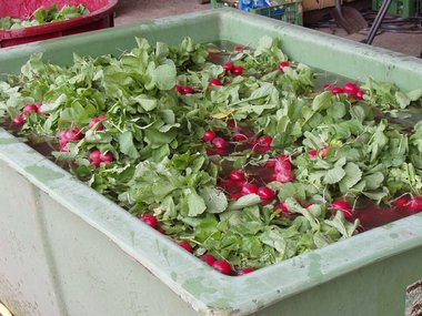 Radieschenernte und Verarbeitung