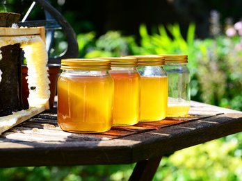 - Honig wird von den Honigbienen produziert und je nach Standort der Bienenstöcke, variiert der Honig in Aussehen und Geschmack (z.B. Blüten- und Waldhonig). Jene zwei Grundstoffe, welche Bienen zur Produktion benötigen, sind Nektar und Honigtau. Honig besteht zu 70-80 % aus unterschiedlichen Zuckersorten, wodurch er eine höhere Süßkraft als Rohr- oder Rübenzucker hat. Die zwei weiteren Hauptbestandteile Honigs sind Wasser (16-20 %) und Beistoffe (2-3 %), wie z.B. Inhibine, die für die antibakterielle und heilende Wirkung des Honigs verantwortlich sind aber nur bei Temperaturen unter 40 °C erhalten bleiben.