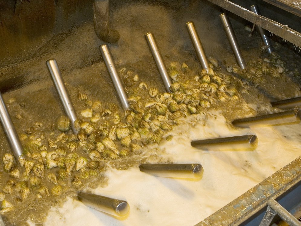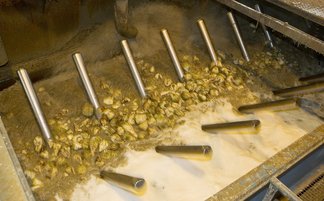 - Die Zuckergewinnung erfolgt im heißen Wasser. Bei ca. 70°C werden die Schnitzel im Wasser von unten nach oben gebracht. Dabei wird der Rohsaft gewonnen, welcher nahezu den gesamten Zucker der Rübe, als auch organische und anorganische Inhaltsstoffe enthält.