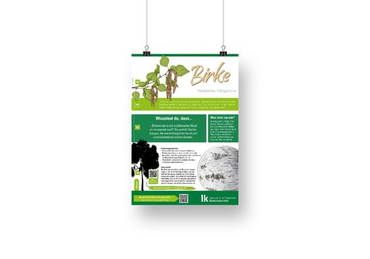Bauminfotafeln am Waldrand bieten die Möglichkeit, Spaziergeher:innen über die Bäume entlang des Weges zu informieren. Was wächst hier und was wird daraus? Aufgelockert mit interessanten "Wusstest du, dass", bunten Grafiken, einem Hinweis zum Keltischen Baumhoroskop und natürlich einer anschaulichen Höhenangabe, wie groß der Baum vor einem wird, sind die Tafeln ein informativer Hingucker.