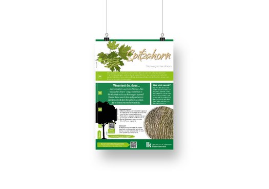 Bauminfotafeln am Waldrand bieten die Möglichkeit, Spaziergeher:innen über die Bäume entlang des Weges zu informieren. Was wächst hier und was wird daraus? Aufgelockert mit interessanten "Wusstest du, dass", bunten Grafiken, einem Hinweis zum Keltischen Baumhoroskop und natürlich einer anschaulichen Höhenangabe, wie groß der Baum vor einem wird, sind die Tafeln ein informativer Hingucker.