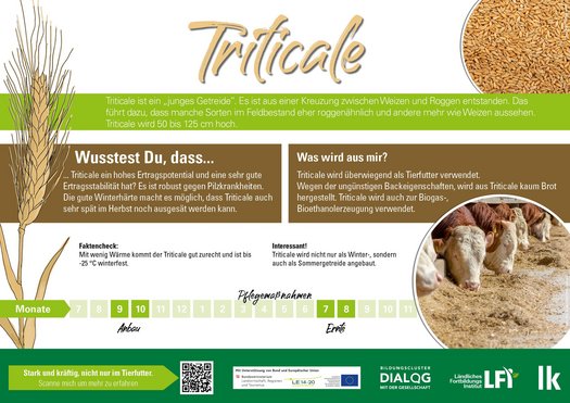Kulturinfotafeln am Feldrand bieten die Möglichkeit, Spaziergeher über die hier angebauten Kulturen zu informieren. Was wächst hier und wie sieht es aus, wenn es reif ist? Aufgelockert mit interessanten "Wusstest du, dass" und bunten Grafiken sind sie ein informativer Hingucker.