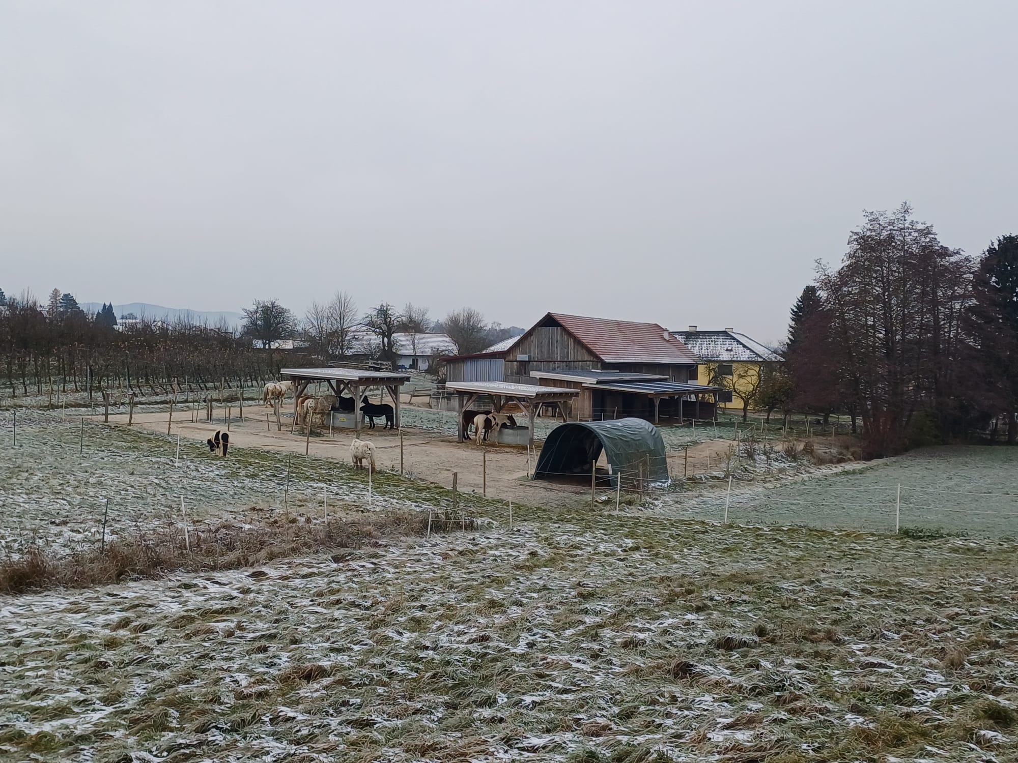 Unser Betrieb besteht aus ca. 10 ha Ackerflächen, 6 ha Grünland und 2 ha Wald und wird konventionell bewirtschaftet. Im Jahr 2019 hat mein Vater, der Betriebsführer, die Milchkuhhaltung aufgegeben, woraufhin das bestehende Laufstallgebäude leer stand. Der Betrieb wurde zum Nebenerwerbsbetrieb mit Direktvermarktung von Obst, Most und Säften. Ein Großteil des Grünlandes wurde verpachtet bzw. das Futter verkauft, der Ackerbau wurde weitergeführt.