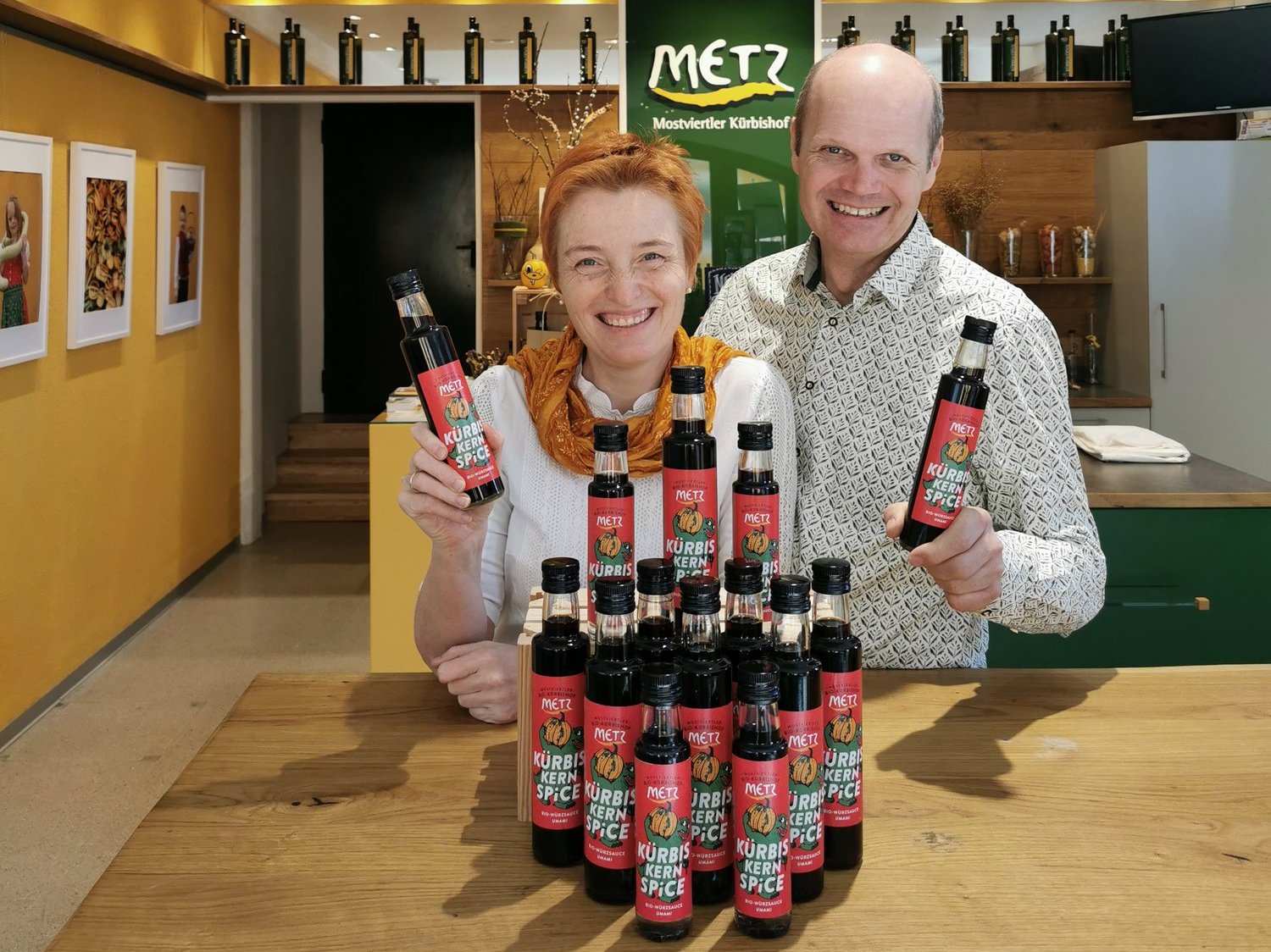 Seit dem Jahr 2000 betreiben wir, die Familie Metz, Direktvermarktung von 150 verschiedenen Speise- und Zierkürbissorten. Aus den Kernen des Ölkürbisses wird goldprämiertes Kürbiskernöl gepresst, viele weitere Produkte vom Kürbis, sowie selbst kaltgepresste Öle (Leinöl, Hanföl, Rapsöl, Nussöl) werden erzeugt. Das Produktsortiment wird ab Hof verkauft, auf Märkten und Messen angeboten, online versendet sowie an zahlreiche Wiederverkäufer geliefert und verschickt. In der Produktion wird teilweise auch auf Kooperationen mit langjährigen Partnerbetrieben gesetzt. Mit der Hofübernahme 2015 wurde der Betrieb auf biologische Wirtschaftsweise umgestellt.