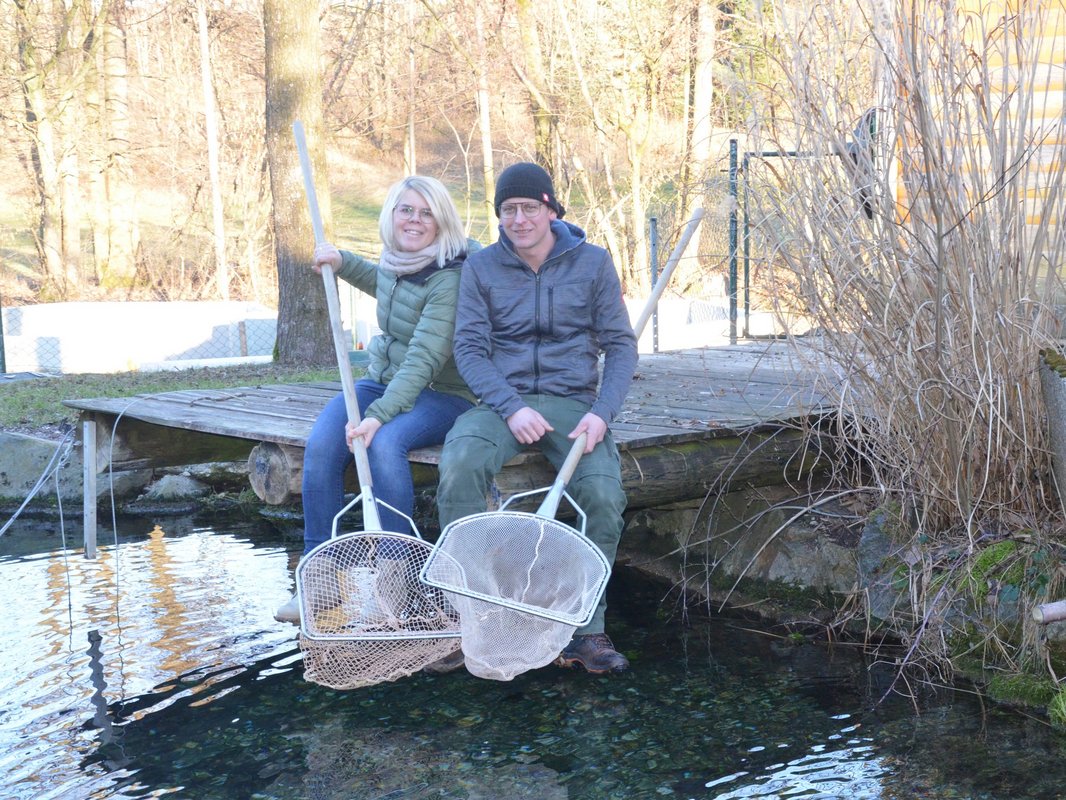 Wir (Simone und Florian Pfaffenbichler) betreiben eine Landwirtschaft mit Mutterkuhhaltung im Nebenerwerb. Seit jeher besteht bereits ein Fischteich auf unserem Grundstück, welcher lange Zeit nicht in Verwendung war. Vor 10 Jahren haben wir diesen wieder reaktiviert und mit Forellen für den eigenen Gebrauch besetzt.